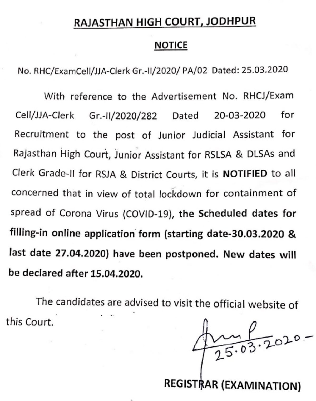 Rajasthan High Court Recruitment Date Postponed Notification 2021 Rajasthan Results