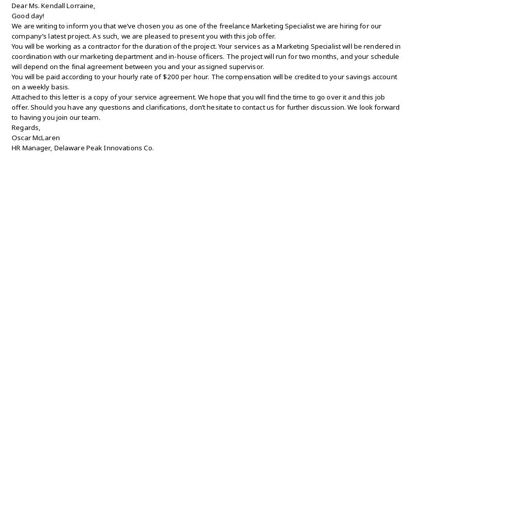 Job Offer Letter For Freelancer 4 Template