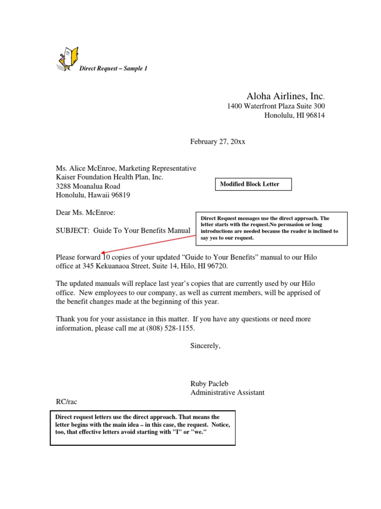 Sample Letter Of Direct Request Plan Pdf Business Nature